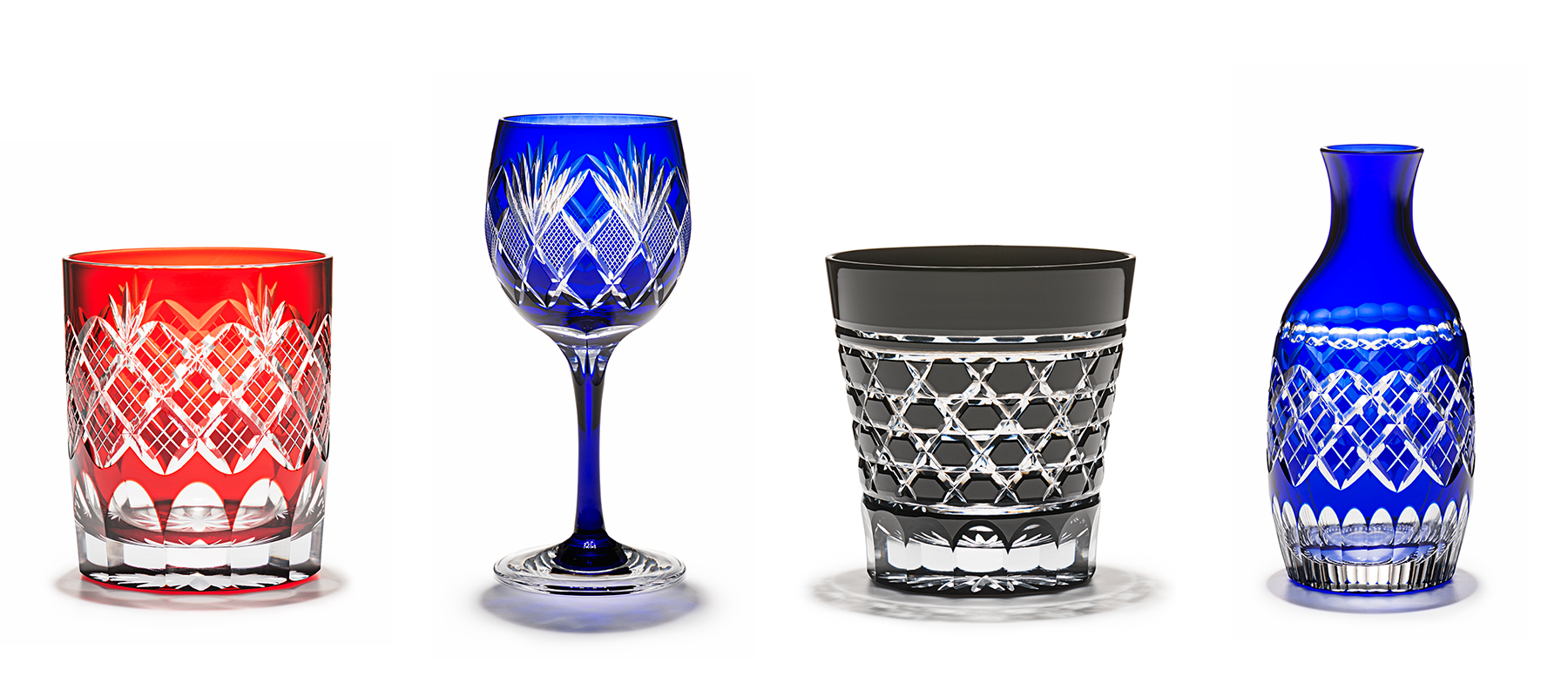 職人の手によって伝統的な模様が刻み込まれたガラスは、光の当たり方によって異なった輝きを見せます。