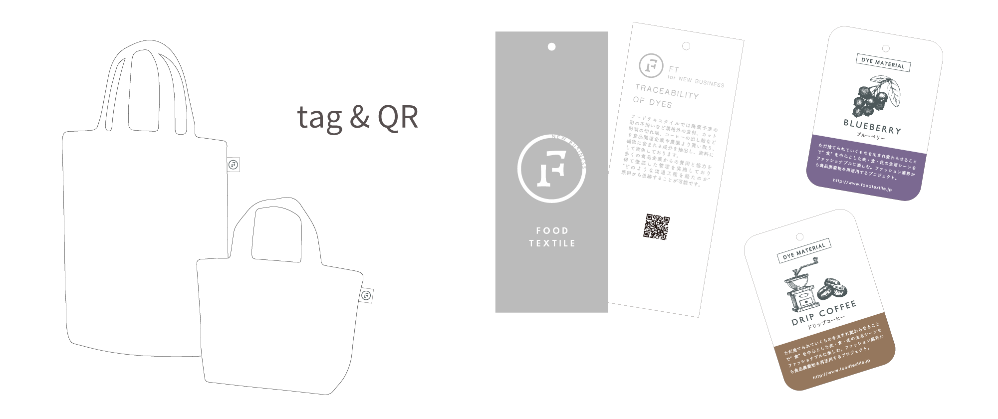 専用の下げ札を付ければ、QRコードを読み込んで「FOOD TEXTILE」に関する詳しい情報を閲覧することができます。製品を使用する方にもきちんと「FOOD TEXTILE」の取り組みをご理解いただくことができるので、こちらもおすすめです。(QRコードの発行には条件がございますので、詳しくはお問い合わせください)