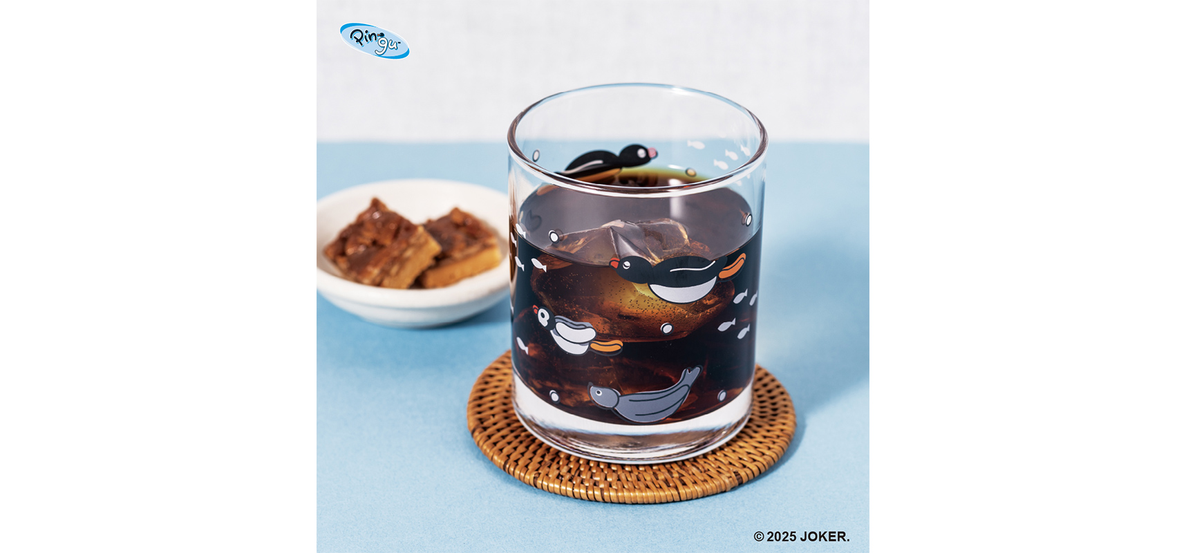 今回製作したアイテムの中に、『珈琲館』で長年愛されている定番商品「炭火アイスコーヒー」イメージしたグラスがあります。グラスに飲み物を注ぐことで、ピングーが泳いでいるように見えるデザインなのですが、その仕様が“可愛い”という反応を多く見かけました。